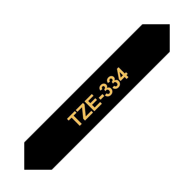 Brother TZe334 Cinta Laminada Generica de Etiquetas - Texto dorado sobre fondo negro - Ancho 12mm x 8 metros