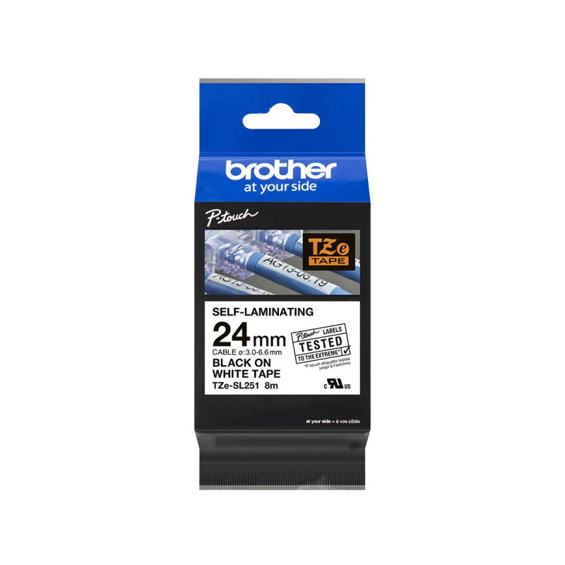 Brother TZeSL251 Cinta Autolaminada Original - Texto Negro sobre Fondo Blanco - Ancho 24mm x 8 metros